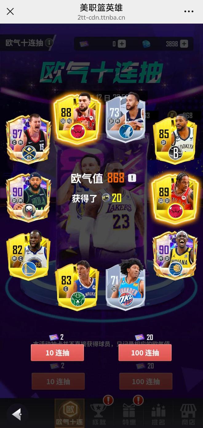 扫码进入游戏-活动-即可参与欧气十连抽赢铂金卡自选!
